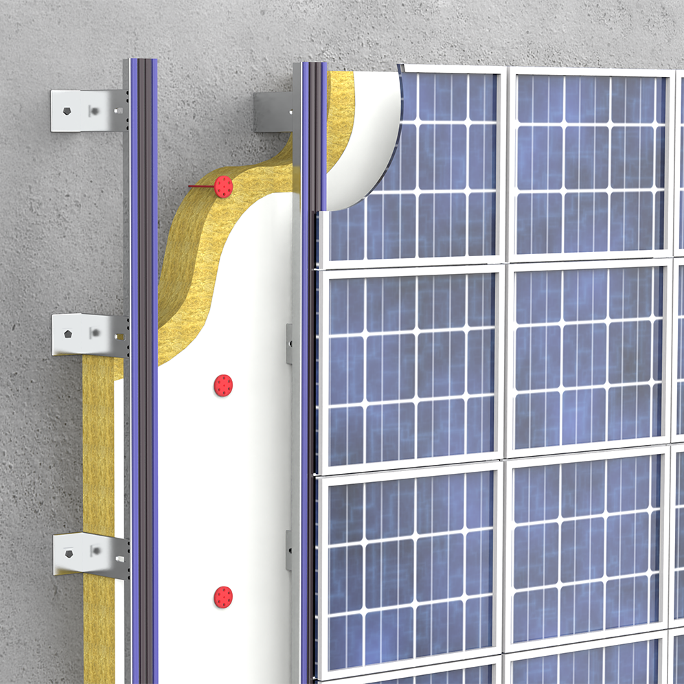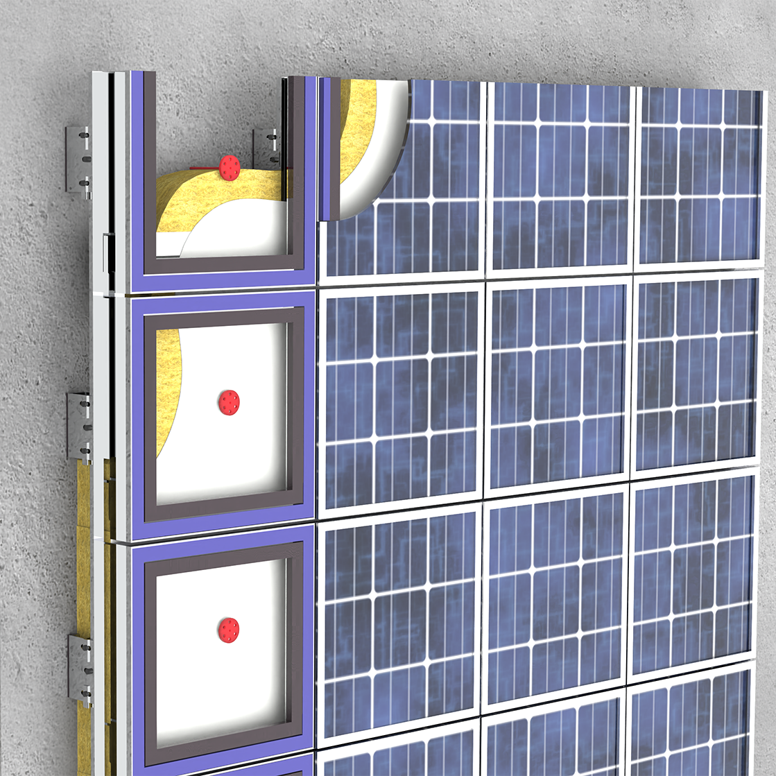 • Регулируемые крепления для оптимального угла наклона панелей • Интеграция солнечных батарей в существующие фасадные системы • Устойчивость к вибрациям и сейсмическим нагрузкам • Легкий доступ для обслуживания и замены панелей • Возможность создания энергоактивных фасадов"